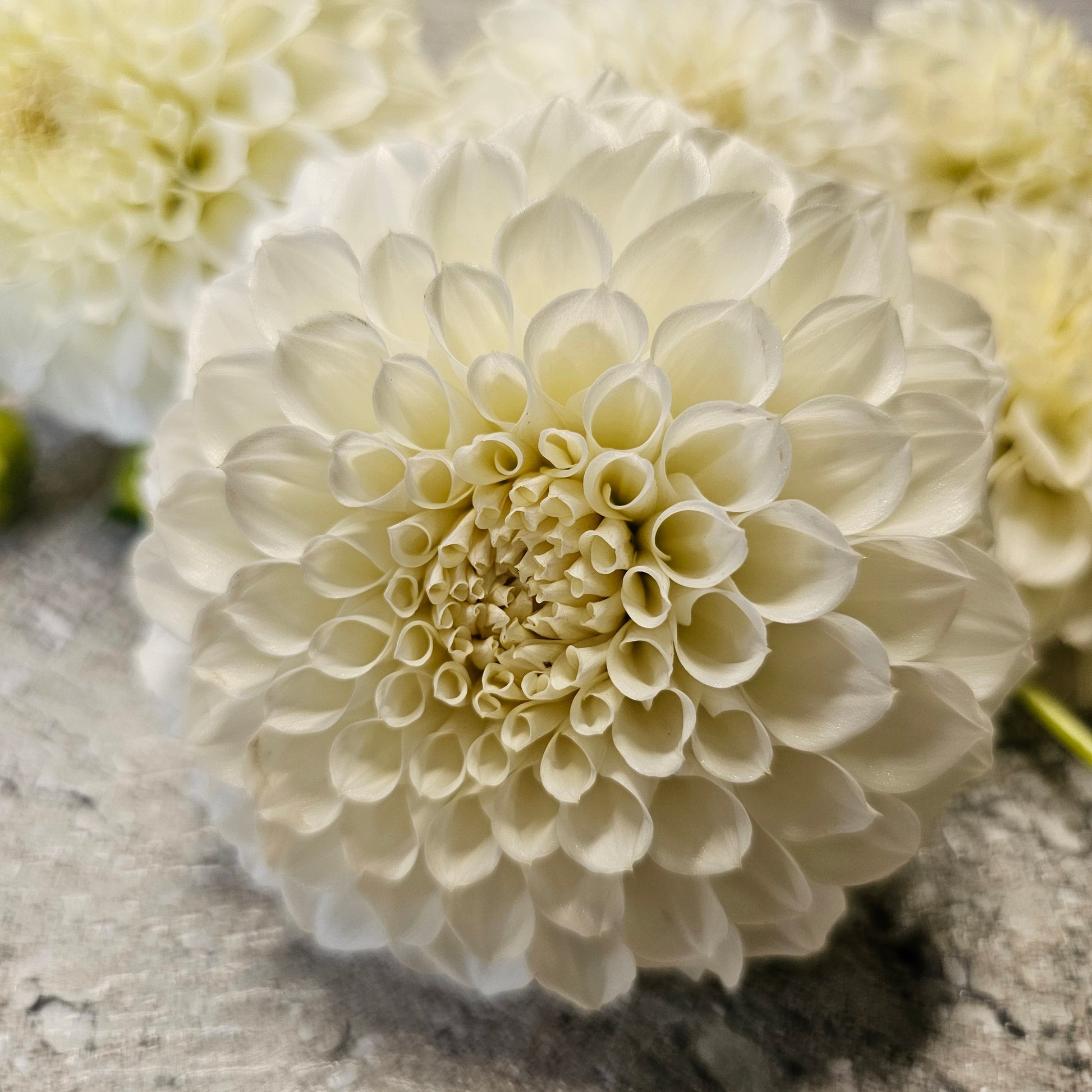 A pristine, miniature to small informal Decorative dahlia, it has a bright, clean white tone,