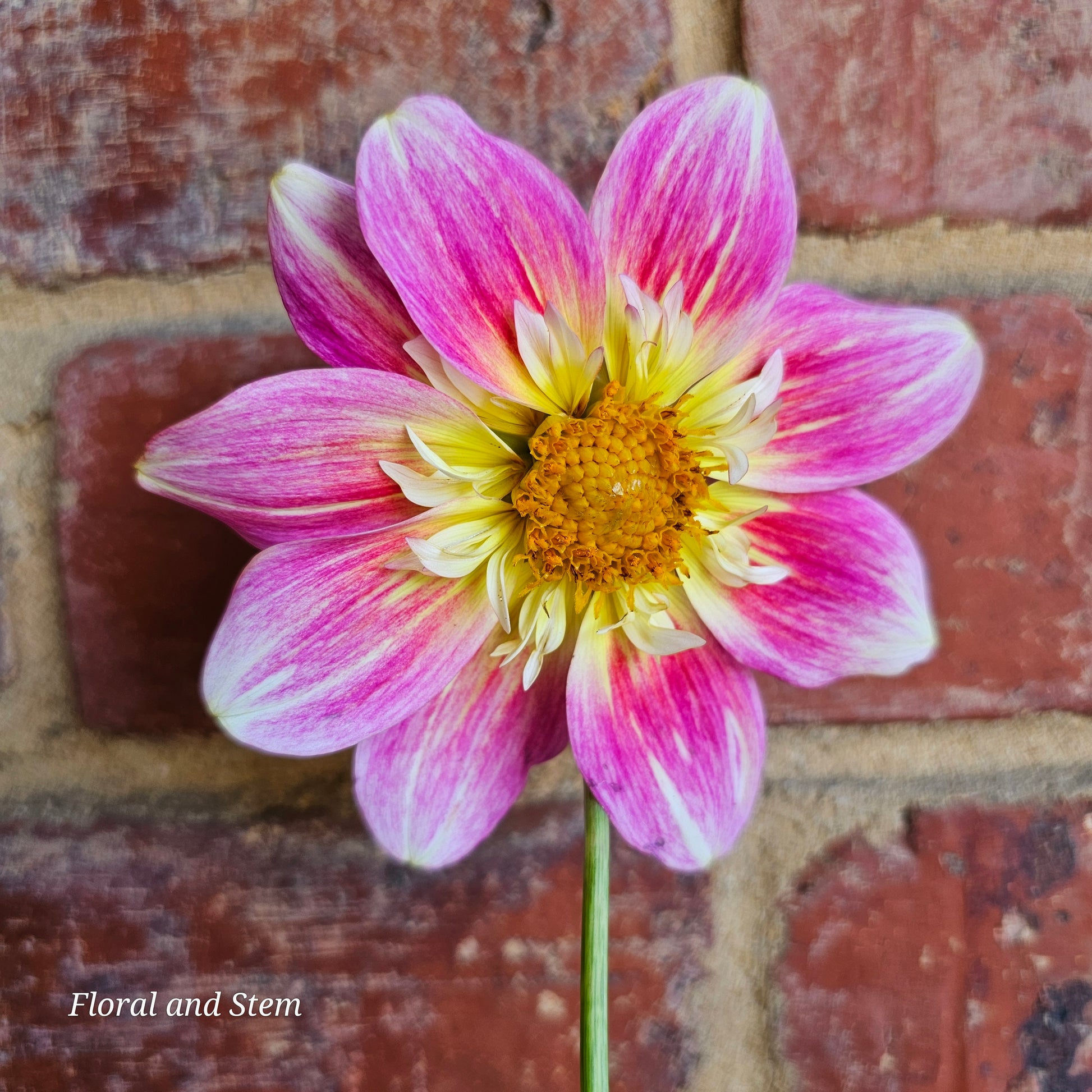 An exquisite pink and yellow Collerette dahlia, It was one of my favourite new varieties to grow this season.