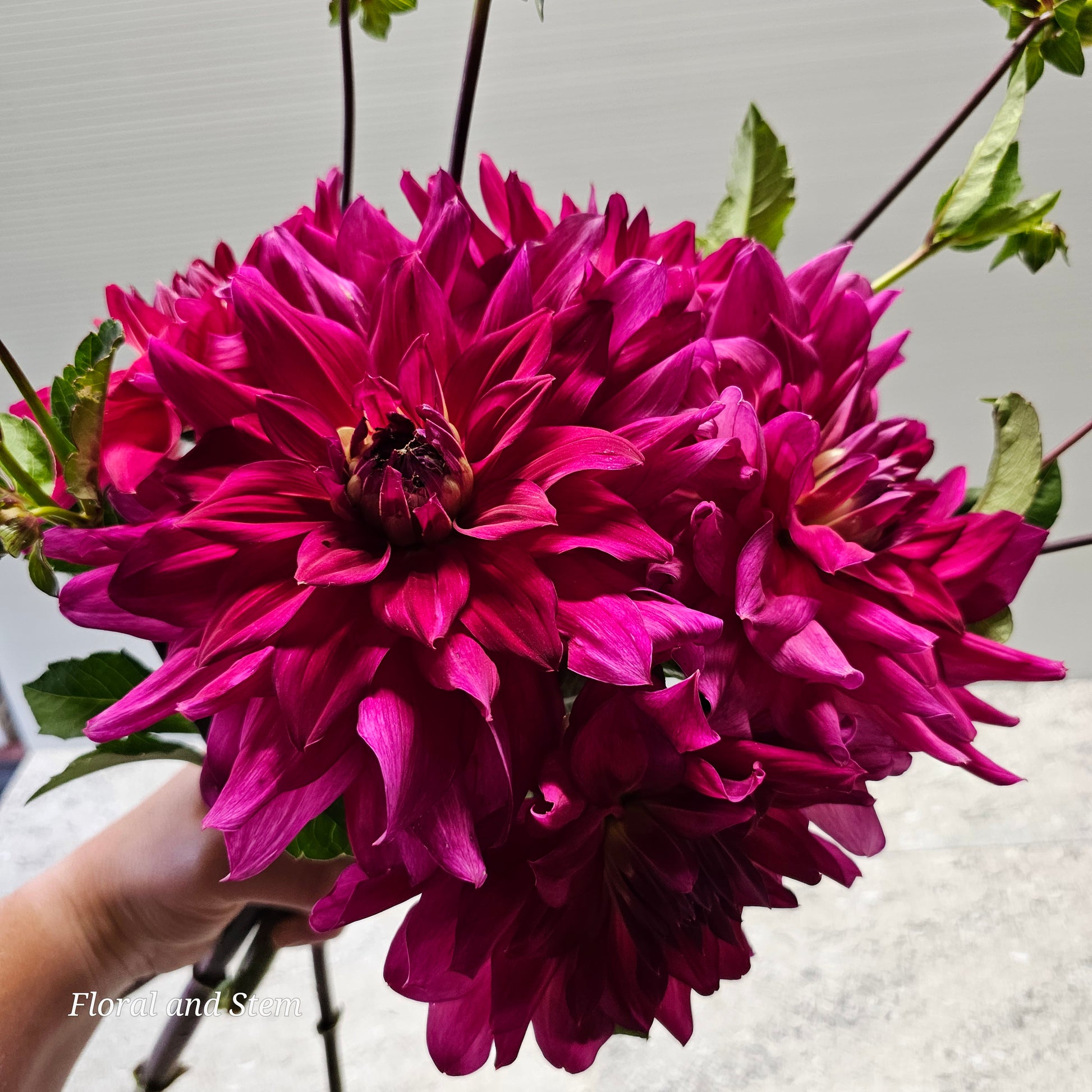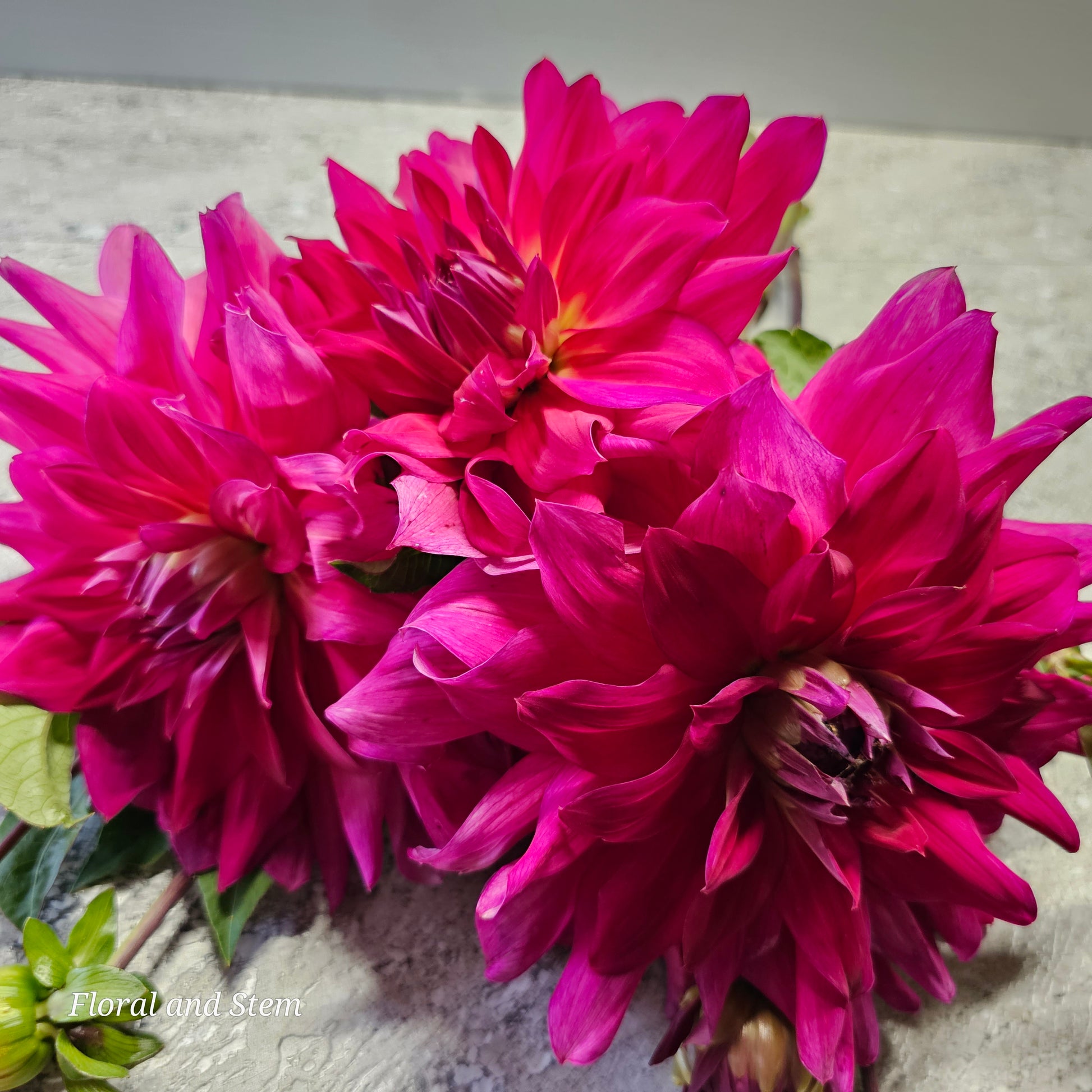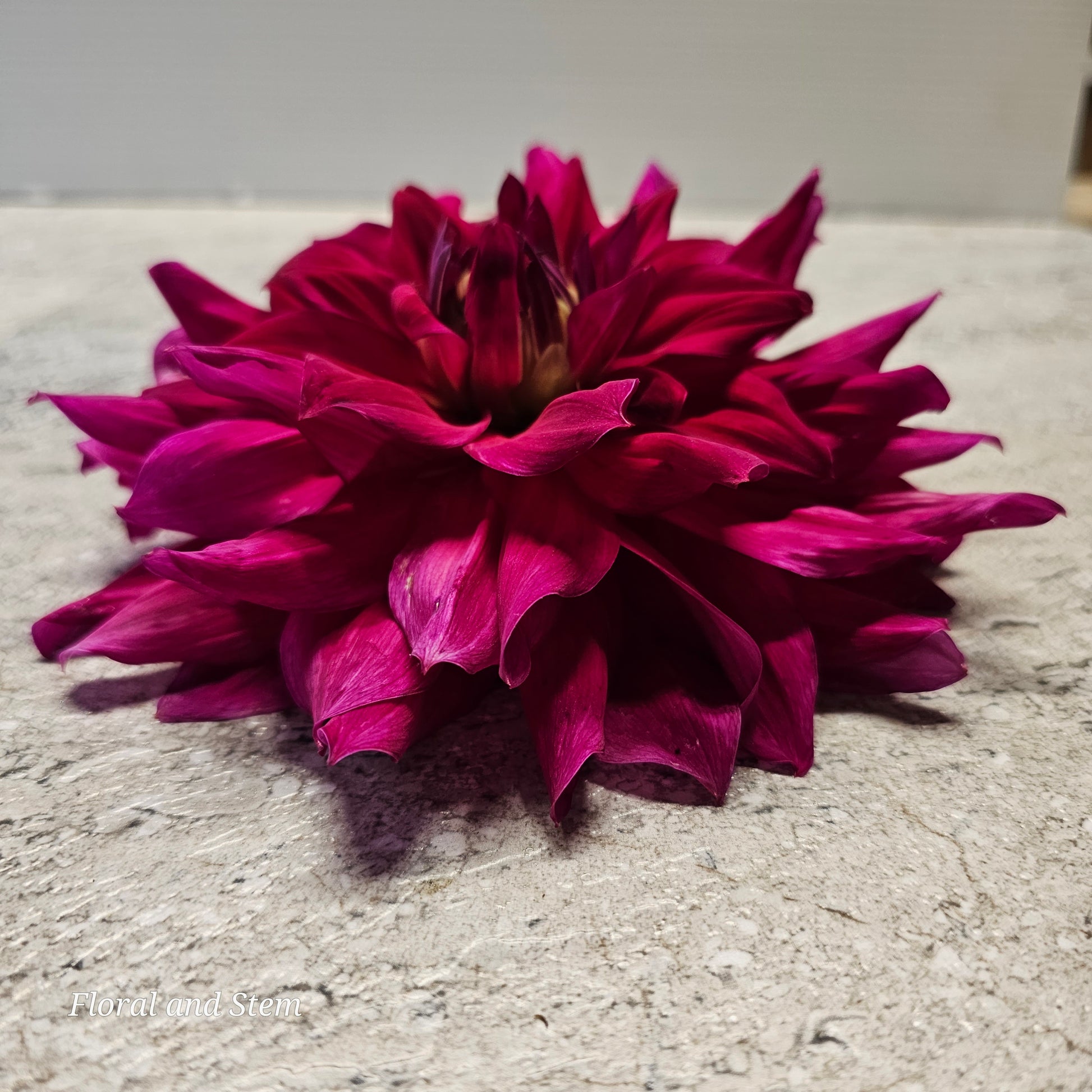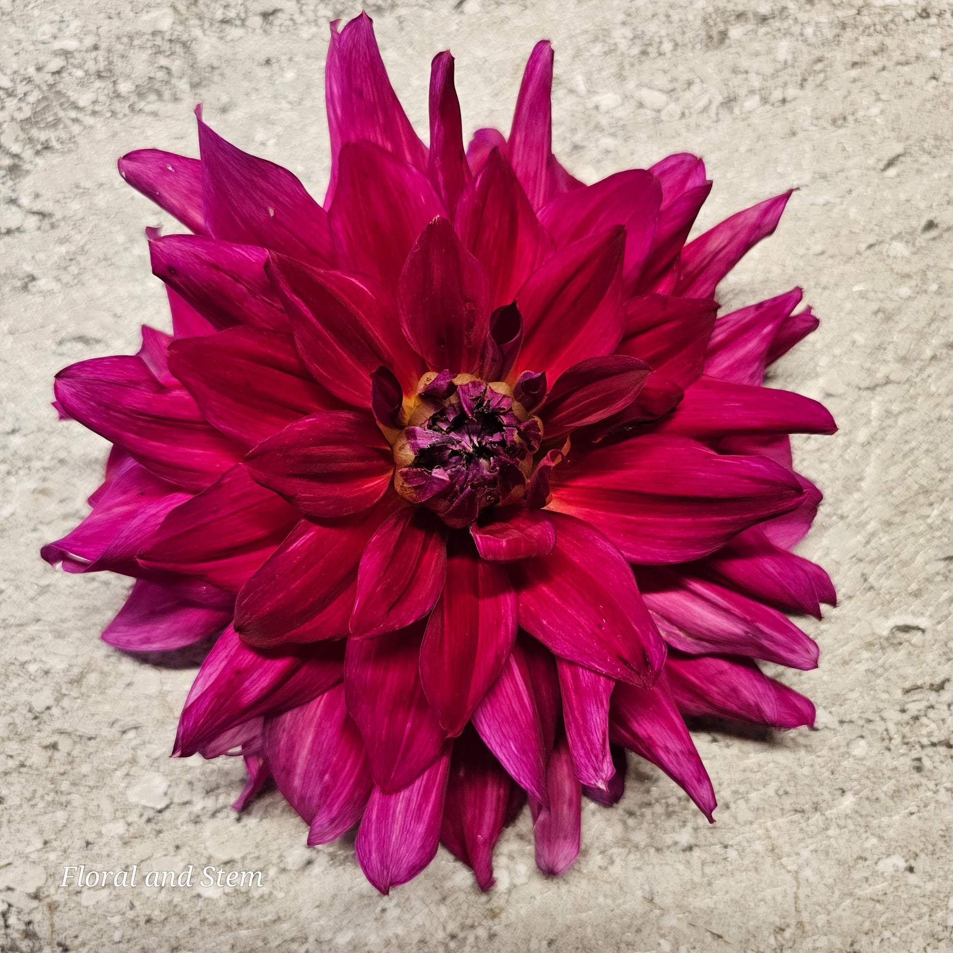 A fun, medium informal decorative dahlia, that had a gorgeous cerise tone with touches of yellow peaking through from the base.